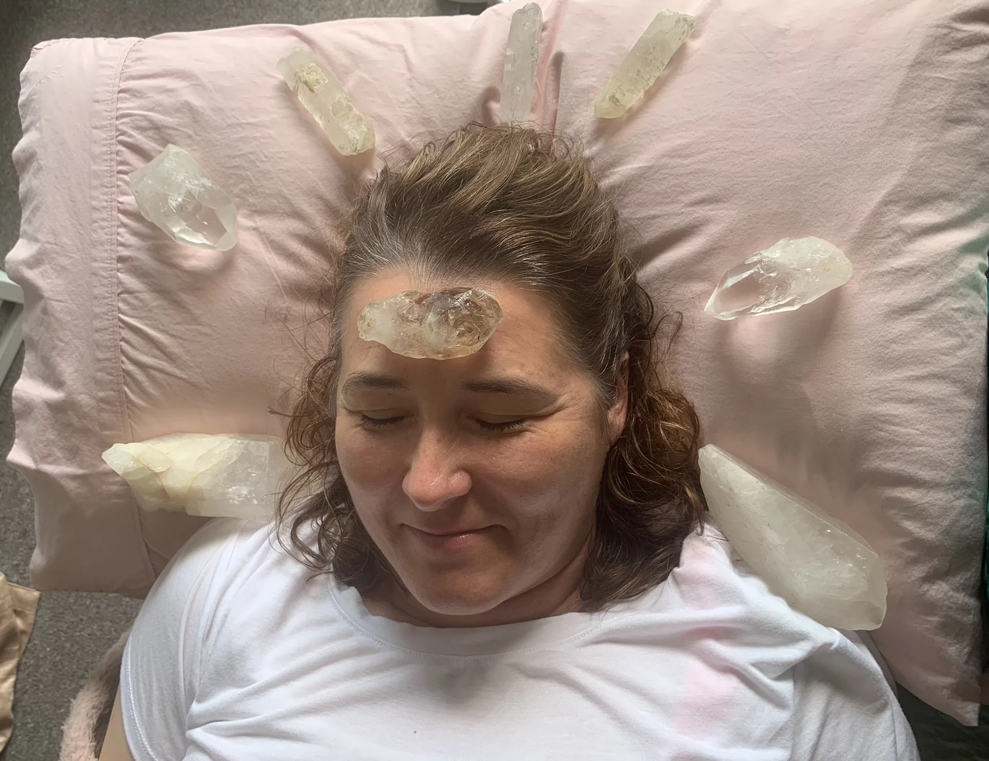 She starts with karakia as I lie on the table grasping beautiful crystals while others are gently positioned on me.